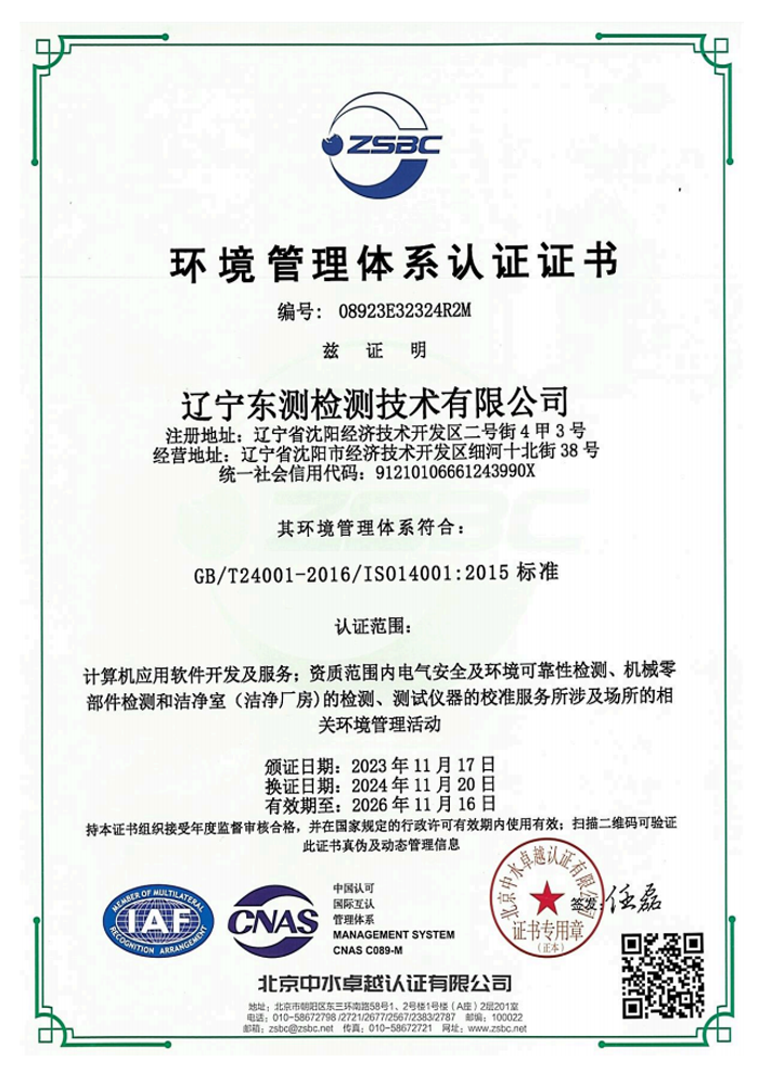 環(huán)境管理體系認(rèn)證證書